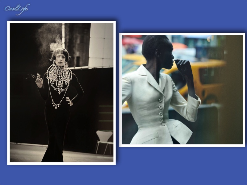 Carolyn Murphy fotografiada por Peter Lindbergh con un vestido de noche de Dior by Gianfranco Ferré y el propio vestido.