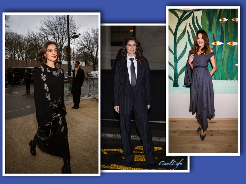 - Anamaria Vartolomei acudiendo al desfile de Chanel, Laetitia Casta en el desfile de Armani Privé y Carla Bruni en el de Dior.