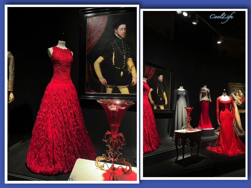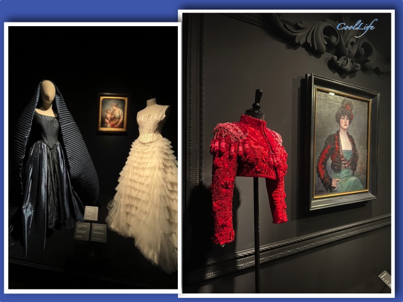 La exhibición la componen 120 diseños del maestro que se presentan en diálogo con diversas obras de arte de artistas como Ramón Casas, Francisco de Zurbarán o Juan Pantoja de la Cruz. Distribuidas en varios pisos, las piezas son dignas de una visita para poder admirarlas de cerca.